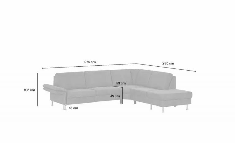 Bemasstes Produktbild ansehen Gesamtbreite: 275 cm Gesamthöhe: 85 cm Gesamttiefe: 235 cm Schenkelmaß 1: 275 cm Schenkelmaß 2: 235 cm Sitztiefe: 53 cm Sitzhöhe: 49 Höhe Füße / Gestell: 15 cm Merkmale Stilrichtung: klassisch Anzahl Sitze: 2 Ausrichtung: rechts Ausstattung Art der Polsterung: Schaumstoff Polster-Unterkonstruktion: Nosag-Wellenunterfederung Ausstattung / Funktion: Armlehnenverstellung Füße/Gestell: Zylinder Funktion: Grundfunktion Material & Farbe Bezug Sitz / Rückenlehne: Mikrofaser Material Füße / Gestell: Metall Materialzusammensetzung Textil: 100% Polyester Sitz- und Rückenbezug: 100% Polyester Farbe / Dekor Füße/Gestell: silberfarben Farbe / Dekor: Beige Artikelnummer: 25407336 Lieferung ohne Dekoration