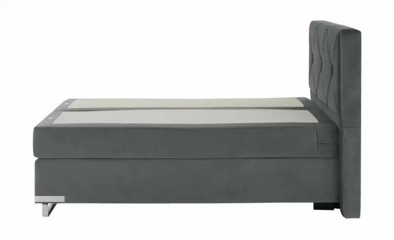 Attraktive Rautensteppung am Kopfteil Moderne, verchromte Highlights Komfort-Kombination aus Bonellfederkernen Samtig weicher Bezug Mit glänzendem Metallkufenfuß Maße Bemasstes Produktbild ansehen Gesamtbreite: 177 cm Gesamtlänge: 214 cm Gesamthöhe: 124 cm Liegefläche Breite: 160 cm Liegefläche (B x L): 160×200 cm Mehr zu Maßen: Kopfteil BHT ca. 177x124x214 cm Höhe Box: 29 cm Höhe Matratze: 22 cm Liegehöhe: 61 cm Liegefläche Länge: 200 cm Höhe Füße: 10 cm Merkmale Stilrichtung: Glamour Modern Ausführung: Kopfteil gesteppt in Knopfheftung Härtegrad der Matratze(n): H2 Anzahl Matratzen: 2 Stück Ausstattung Anzahl Matratzenkerne: 2 Stück Füße/Gestell: Kufengestell Mehr zu Ausstattung / Funktion: Eckapplikationen in Chrom am Untergestell Lieferumfang nicht im Lieferumfang enthalten: Topper Material & Farbe Farbe / Dekor Füße: verchromt Material Gestell: Holzwerkstoff gepolstert und bezogen Matratzenkern: Bonnellfederkern Material Matratzenbezug: Samt Kern der Box: Bonnellfederkern Material Bezug: Samt Materialzusammensetzung Textil: Kopfteil, Boxen und Matratzenbezug: Samt (100% Polyester) Farbe / Dekor: Anthrazit Material Füße: Metall Mehr zu Material: Kopfteil Holzwerkstoff Gepolstert Stoffbezogen Artikelnummer: 13121855 Lieferung ohne Dekoration