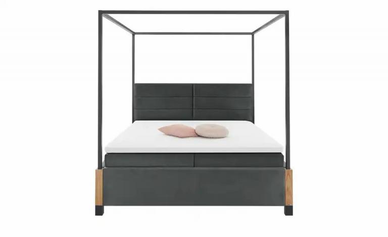 Kopfteil in modernen Kassettensteppung Metallbettgestell verchromt oder anthrazitfarben Massivholz-Akzente aus Eiche oder Nussbaum Inklusive Federholzrahmen Inklusive zwei stoffbezogener 7-Zonen-Taschenfederkernmatratzen Maße Gesamtbreite: 195 cm Gesamtlänge: 215 cm Gesamthöhe: 204 cm Liegefläche Breite: 180 cm Bettseitenhöhe: 46 cm Liegefläche (B x L): 180×200 cm Mehr zu Maßen: Einlegetiefe Lattenrost max. 13,5 cm Kopfteilhöhe ca. 123 cm Höhe Matratze: 22 cm Höhe Topper: 9 cm Liegehöhe: 68 cm Liegefläche Länge: 200 cm Höhe Füße: 10 cm Merkmale Stilrichtung: Modern Glamour Mehr zu Ausführung: Kopfteil Kassettensteppung Ausführung: Fußfarbe Eiche Härtegrad der Matratze(n): H2 Ausstattung Lattenrost: Federholzrahmen Füße/Gestell: eckig Mehr zu Ausstattung / Funktion: 7 Liegezonen Topper Federholzrahmen mit 28 Federholzleisten, davon 5 Doppelleisten mit Härtegradschieber zur individuellen Einstellung des Mittelzonenbereiches variable Einlasstiefe ohne Rahmen und Matratzen: 6,0–13,5 cm Topperbezug mit 4-seitigen Reißverschluss abnehmbar und waschbar bis 60 Grad Topperbezug mit Silver Protect (antistatisch, antibakteriell und antifungizid) Lieferumfang Lieferumfang / mitgeliefertes Zubehör: 2 Matratzen 2 Lattenrahmen 1 Topper Material & Farbe Material Gestell: Holzwerkstoff gepolstert und bezogen Metall Matratzenkern: Tonnentaschenfederkern Material Matratzenbezug: Samt Material Bezug: Samt Materialzusammensetzung Textil: Kopfteil-, Boxen- und Matratzenbezug: Samt (100% Polyester) Topperbezug: Stretch-Doppeltuch (86% Polyester, 14% Polyamid) Farbe / Dekor: Anthrazit Material Füße: Massivholz lackiert Mehr zu Material: Kopfteil Holzwerkstoff Gepolstert Stoffbezogen Artikelnummer: 14120134 Lieferung ohne Dekoration