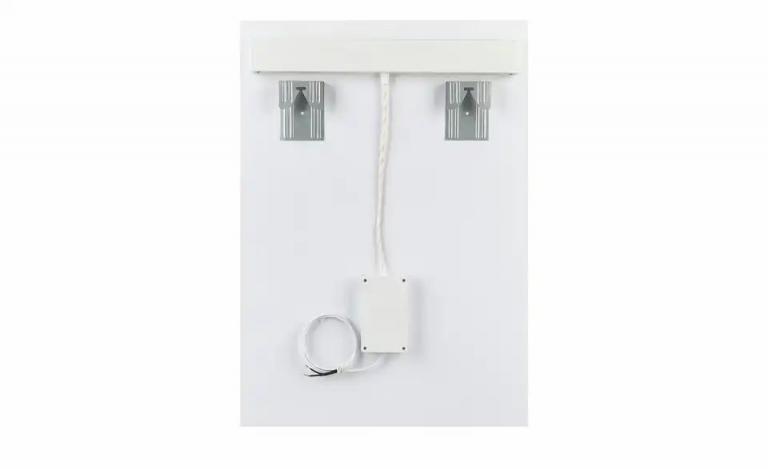 Gesamtbreite: 50 cm Gesamthöhe: 70 cm Merkmale Stilrichtung: Zeitlos Modern Form: rechteckig Montageart: hängend Ausrichtung: senkrecht Ausstattung Ausstattung / Funktion: LED-Beleuchtung wandhängend Packung: Einzelartikel Mehr zu Ausstattung / Funktion: Wird über Wandschalter gesteuert Technische Daten Maximale Leistung: 12 W Spannung: 230 V Material & Farbe Farbe / Dekor: transparent Material: Glas Mehr zu Material: Spiegelglas Artikelnummer: 41640034 Lieferung ohne Dekoration