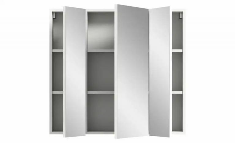 Bemasstes Produktbild ansehen Gesamtbreite: 60 cm Gesamtlänge: 60 cm Gesamthöhe: 77 cm Gesamttiefe: 18 cm Merkmale Stilrichtung: Basic Griffart: Griffmulde Anzahl Spiegeltüren: 2 Stück Anzahl Böden: 6 Stück Anzahl verstellbare Einlegeböden: 6 Stück Türanschlag: wechselbar Türart: Drehtüren Ausstattung Ausstattung / Funktion: Bestandteile einzeln platzierbar Hinweise max. Belastbarkeit je verstellbarem Einlegeboden bis ca.: 5 kg max. Belastbarkeit je festem Einlegeboden bis ca.: 10 kg Material & Farbe Farbe / Dekor Korpus innen: Weiß Farbe / Dekor Einlegeböden: Weiß Farbe / Dekor Front: Weiß Material Korpus: Holzwerkstoff beschichtet Material Front: Holzwerkstoff mit Spiegel Farbe / Dekor Korpus: Weiß Farbe / Dekor: Weiß Mehr zu Material: MDF Artikelnummer: 41610411 Lieferung ohne Dekoration
