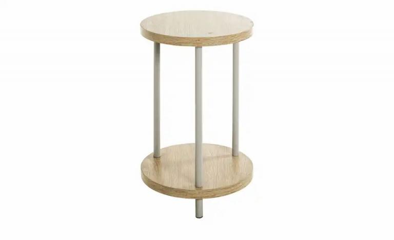 Tischplatte in Eiche-Melamindekor Mit zusätzlicher Ablage Graues Metallgestell Maße Bemasstes Produktbild ansehen Gesamthöhe: 50 cm Durchmesser: 30 cm Stärke Tischplatte: 2,5 cm Merkmale Stilrichtung: Modern Form: rund Mehr zu Ausführung: Mit zusätzlicher Ablage Ausstattung Gestell: Füße mit Gleitern Technische Daten max. Belastbarkeit bis ca.: 8 kg Hinweise Reinigungsart & Pflegehinweise: Flüssigkeiten und Fett möglichst sofort abwischen Material & Farbe Farbe / Dekor Gestell: Grau Material Tischplatte: Holzwerkstoff beschichtet Material Gestell: Metall pulverbeschichtet Farbe / Dekor: Eiche (Nachbildung) Mehr zu Material: Tischplatte und Ablage: MDF melaminbeschichtet Gestell: Stahlrohr pulverbeschichtet Mehr zu Farbe: Platten: Eiche hell Artikelnummer: 40341876 Lieferung ohne Dekoration