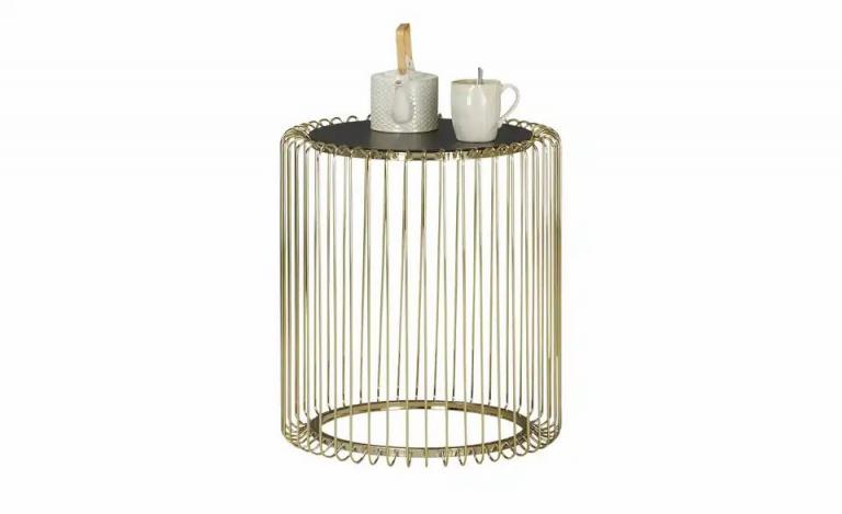Stylisches goldfarbens Gestell Pflegeleichte Oberfläche Stabiles Metallgestell Maße Gesamthöhe: 55 cm Durchmesser: 50 cm Stärke Tischplatte: 1,8 cm Merkmale Stilrichtung: Glamour Modern Form: rund rund Ausstattung Gestell: Säule Technische Daten max. Belastbarkeit bis ca.: 5 kg Hinweise Reinigungsart & Pflegehinweise: Oberfläche mit feuchtem Baumwolltuch abwischen und mit trockenem Tuch nachwischen Material & Farbe Farbe / Dekor Gestell: Goldfarben Material Tischplatte: Metall pulverbeschichtet Material Gestell: Metall beschichtet Farbe / Dekor: Schwarz matt Artikelnummer: 40340105 Lieferung ohne Dekoration