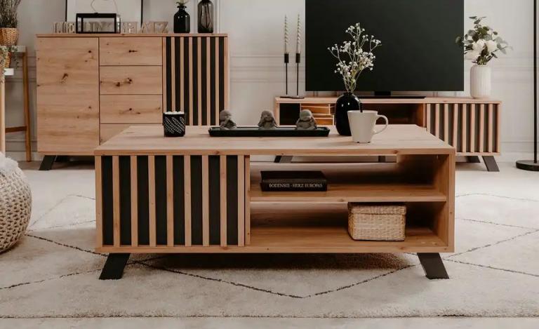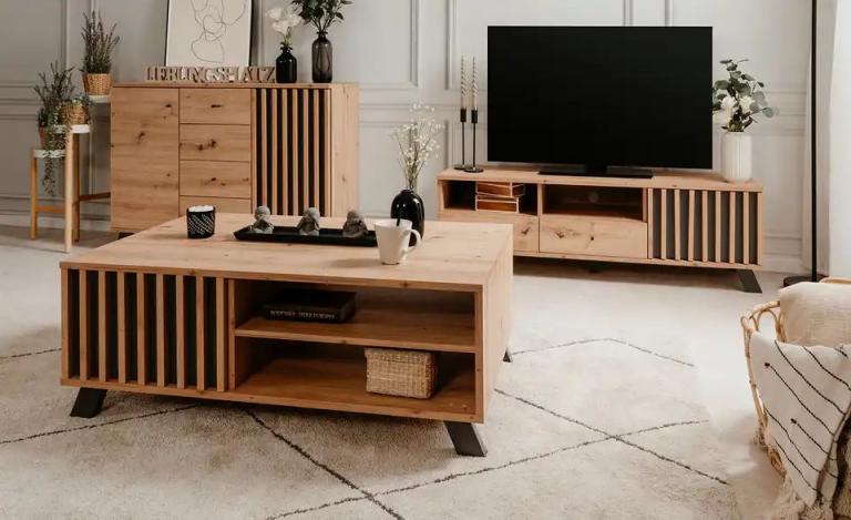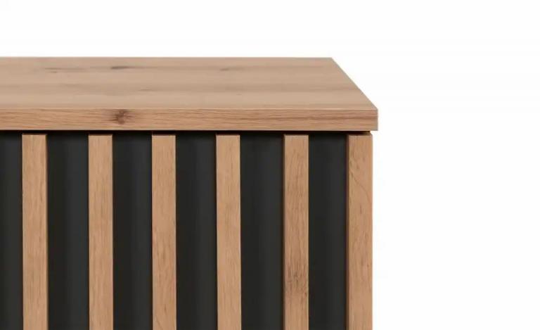 AkzentstarkeLamellen 3D-Optik Viel Stauraum und Ablagefläche Moderner Skandilook Maße Gesamtbreite: 110,5 cm Gesamthöhe: 42 cm Gesamttiefe: 67 cm Merkmale Stilrichtung: Modern Industrial Form: rechteckig rechteckig Ausstattung Gestell: Standfußgestell Mehr zu Ausstattung / Funktion: 2 Fächer 2 Türen Material & Farbe Farbe / Dekor Gestell: Anthrazit Material Gestell: Holzwerkstoff beschichtet Farbe / Dekor: Eiche (Nachbildung) Asteiche Mehr zu Farbe: Absetzung: Holzwerkstoff anthrazit beschichtet Artikelnummer: 13207811 Lieferung ohne Dekoration
