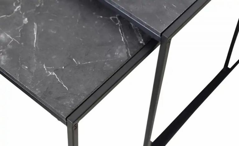 Einzeln oder getrennt platzierbar Mit widerstandfähiger Melaminbeschichtung Stabiles Metallgestell Maße Gesamtbreite: 60 cm Gesamtlänge: 120 cm Gesamthöhe: 48 cm Maße Tisch (LxB): 120 x 60 x 48 cm Mehr zu Maßen: Tisch 1: 120 x 60 x 48 cm Tisch 2: 56 x 56 x 44 cm Tisch 3: 56 x 56 x 44 cm Stärke Tischplatte: 1,5 cm Merkmale Stilrichtung: Modern Zeitlos Ausstattung Gestell: Kufengestell Technische Daten max. Belastbarkeit bis ca.: 20 kg Hinweise Reinigungsart & Pflegehinweise: Oberfläche mit feuchtem Baumwolltuch abwischen und mit trockenem Tuch nachwischen Material & Farbe Farbe / Dekor Gestell: Schwarz Material Tischplatte: Holzwerkstoff foliert Material Gestell: Metall pulverbeschichtet Farbe / Dekor: Schwarz Mehr zu Farbe: Platte: Marmor (Nachbildung), Schwarz Artikelnummer: 40321281 Lieferung ohne Dekoration