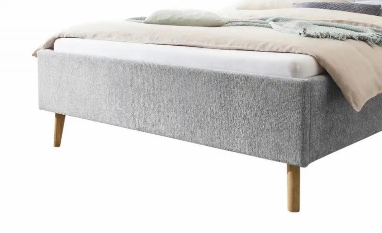 Gepolstertes Kopfteil zum gemütlichen Anlehnen Holzfüße massiv, eichefarben Modernes Design Maße Gesamtbreite: 149 cm Gesamtlänge: 214 cm Gesamthöhe: 110 cm Liegefläche Breite: 140 cm Bettseitenhöhe: 50 cm Mehr zu Maßen: Maximale Einlasstiefe des Lattenrahmen ca. 16 cm Bodenfreiheit: 20 cm Liegefläche Länge: 200 cm Höhe Füße: 20 cm Merkmale Stilrichtung: Modern Skandi Technische Daten max. Belastbarkeit pro Liegefläche bis ca.: 120 kg Lieferumfang nicht im Lieferumfang enthalten: Lattenrahmen und Matratze Hinweise Reinigungsart & Pflegehinweise: Flüssigkeiten und Fett möglichst sofort abwischen Oberflächen nur mit geeignetem Aufsatz absaugen keine scharfen Haushaltsreiniger verwenden Material & Farbe Farbe / Dekor Füße: Eiche Material Gestell: Holzwerkstoff gepolstert und bezogen Material Bezug: Webstoff Materialzusammensetzung Textil: 92% Polyester, 8% Nylon Farbe / Dekor: Grau Material Füße: Massivholz Artikelnummer: 40129257 Lieferung ohne Dekoration