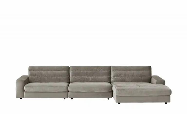 Bemasstes Produktbild ansehen Gesamtbreite: 416 cm Gesamthöhe: 83 cm Gesamttiefe: 205 cm Sitztiefe: 84 cm Sitzhöhe: 43 Merkmale Stilrichtung: Retro Ausrichtung: rechts Ausstattung Art der Polsterung: Schaumstoff Polster-Unterkonstruktion: Wellenunterfederung Ausstattung / Funktion: Frei im Raum stellbar Füße/Gestell: Gleiter Material & Farbe Bezug Sitz / Rückenlehne: Samt Material Füße / Gestell: Kunststoff Materialzusammensetzung Textil: 100% Polyetser Sitz- und Rückenbezug: 100% Polyetser Farbe / Dekor Füße/Gestell: Schwarz Farbe / Dekor: Silbergrau Artikelnummer: 22407006 Lieferung ohne Dekoration