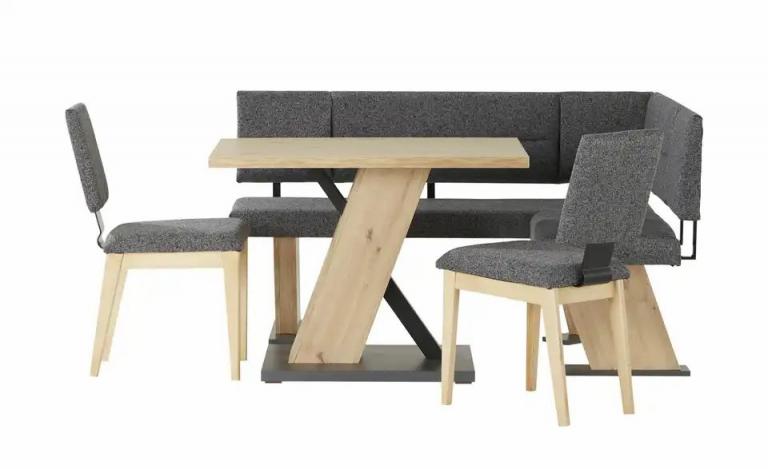Gesamtbreite: 160 cm Gesamthöhe: 86 cm Gesamttiefe: 120 cm Mehr zu Maßen: Esstisch LBH: ca. 100x68x75 cm Merkmale Stilrichtung: Modern Mehr zu Ausführung: seitenverkehrt montierbar Ausstattung Mehr zu Ausstattung / Funktion: rechts und links montierbar Lieferumfang Lieferumfang / mitgeliefertes Zubehör: Eckbank Tisch 2 Stühle Hinweise Reinigungsart & Pflegehinweise: Oberfläche mit feuchtem Baumwolltuch abwischen und mit trockenem Tuch nachwischen keine scharfen Haushaltsreiniger verwenden Material & Farbe Material Tischplatte: Holzwerkstoff foliert Material Gestell: Holzwerkstoff foliert Farbe / Dekor: Grau Schwarz Eiche Artisan (Nachbildung) Mehr zu Material: Material Stuhlgestell: Massivholz Buche Artikelnummer: 14305598 Lieferung ohne Dekoration
