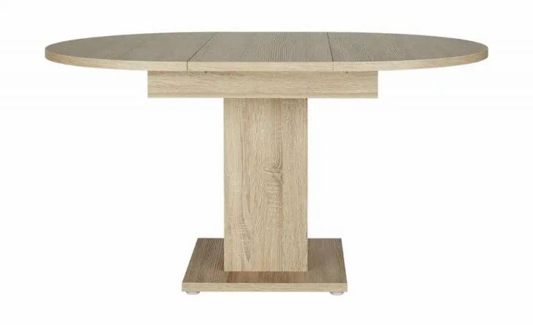 ausziehbar bis ca. 140 cm bietet Platz für ca. 6 Personen pflegeleichte, widerstandsfähige Oberfläche Maße Gesamthöhe: 75 cm Durchmesser: 100 cm Stärke Tischplatte: 2,2 cm Merkmale Stilrichtung: Zeitlos Form: rund rund Ausführung Tischkante: gerade Tischkante Platz für ca.: 6 Personen Ausstattung Ausstattung / Funktion: ausziehbar Mittelauszug Gestell: Säule Technische Daten Ausziehbar bis: 140 cm max. Belastbarkeit bis ca.: 50 kg Hinweise Reinigungsart & Pflegehinweise: Oberfläche mit feuchtem Baumwolltuch abwischen und mit trockenem Tuch nachwischen Material & Farbe Farbe / Dekor Gestell: Eiche sägerau (Nachbildung) Material Tischplatte: Holzwerkstoff beschichtet Material Gestell: Holzwerkstoff beschichtet Farbe / Dekor: Eiche Sonoma (Nachbildung) Eiche sägerau (Nachbildung) Mehr zu Material: Melaminharzbeschichtung Artikelnummer: 12308831 Lieferung ohne Dekoration