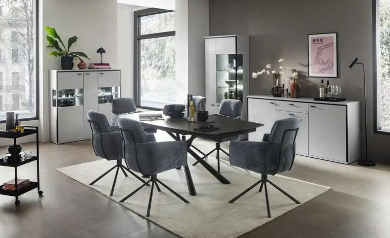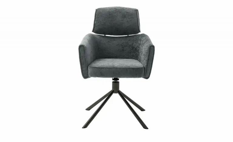 Sitzhöhe: 50 cm Gesamtbreite: 61 cm Gesamthöhe: 91 cm Gesamttiefe: 64 cm Sitztiefe: 46 cm Merkmale Stilrichtung: Modern Zeitlos Ausstattung Ausstattung / Funktion: Armlehne Griff Drehfunktion Art der Polsterung: Taschenfederkern Gestell: Stativgestell Polster-Unterkonstruktion: Holzwerkstoff Mehr zu Ausstattung / Funktion: um 360 Grad drehbar mit Rückstellfunktion oberer Rücken beweglich dank Metallgestell Technische Daten max. Belastbarkeit bis ca.: 120 kg Hinweise Reinigungsart & Pflegehinweise: Flüssigkeiten und Fett möglichst sofort abwischen keine scharfen Haushaltsreiniger verwenden Material & Farbe Bezug Sitz / Rückenlehne: Chenille Material Füße / Gestell: Metall Materialzusammensetzung Textil: 100% Polyester Farbe / Dekor Füße/Gestell: Schwarz lackiert Farbe / Dekor: Anthrazit Material Sitz / Rückenlehne: Holzwerkstoff gepolstert und bezogen Artikelnummer: 40302725 Lieferung ohne Dekoration