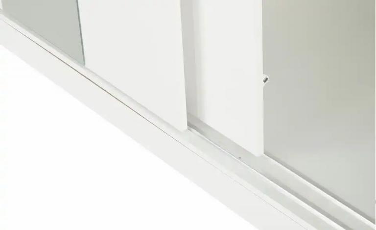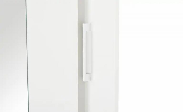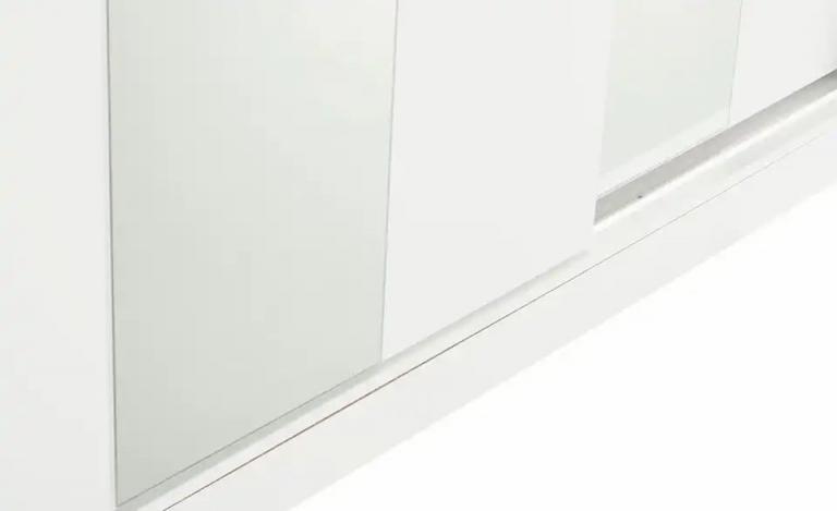 Zeitloses Design mit Schiebetüren Geräumige Inneneinteilung Frontabsetzung mit Spiegel Maße Gesamtbreite: 200 cm Gesamthöhe: 215 cm Gesamttiefe: 60 cm Merkmale Stilrichtung: Zeitlos Griffart: Bügelgriff Mehr zu Ausführung: Frontabsetzung mit Spiegel Anzahl Türen: 2 Stück Anzahl Spiegeltüren: 2 Stück Anzahl Böden: 4 Stück Türart: Schiebetüren Anzahl Kleiderstangen: 1 Stück Ausstattung Gestell: Sockel Ausstattung / Funktion: Spiegel Mehr zu Ausstattung / Funktion: 1 durchgehender Einlegeboden, 3 kleine Einlegeböden Hinweise max. Belastbarkeit je festem Einlegeboden bis ca.: 5 kg Montagehinweise: Schrank ist liegend zu montieren Reinigungsart & Pflegehinweise: Oberfläche mit feuchtem Baumwolltuch abwischen und mit trockenem Tuch nachwischen Reinigung mit feuchtem, nicht tropfnassem Tuch keine scharfen Haushaltsreiniger verwenden Material & Farbe Material Kleiderstange: Metall Farbe / Dekor Korpus innen: Weiß Farbe / Dekor Einlegeböden: Weiß Farbe / Dekor Griffe: silberfarben Farbe / Dekor Front: matt Weiß Farbe / Dekor Kleiderstange: Weiß Material Korpus: Holzwerkstoff laminiert Material Front: Holzwerkstoff laminiert Holzwerkstoff mit Spiegel Material Einlegeböden: Holzwerkstoff laminiert Material Griffe: Kunststoff Material Füße / Gestell: Holzwerkstoff foliert Farbe / Dekor Füße/Gestell: Weiß Farbe / Dekor Korpus: Weiß Farbe / Dekor: Weiß Artikelnummer: 11136943 Lieferung ohne Dekoration