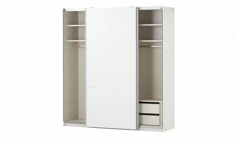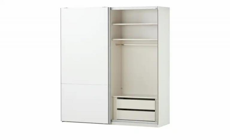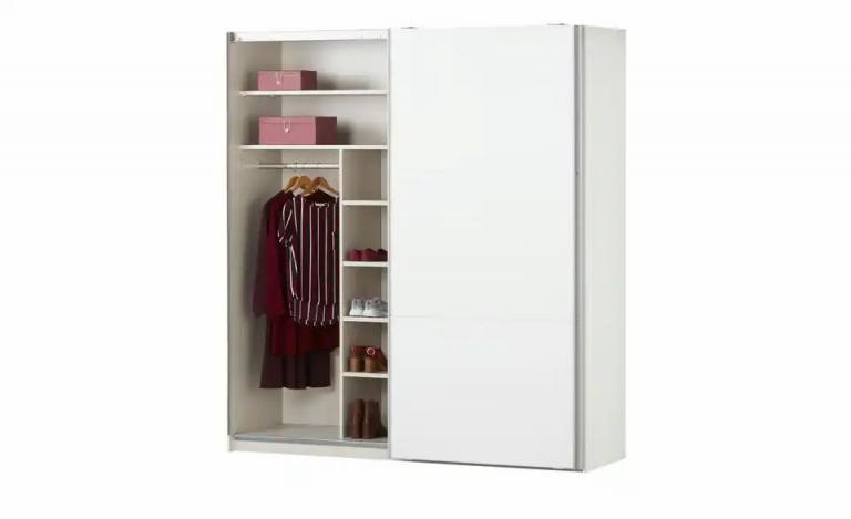inklusive praktischer T-Einteilung und einem Schubkasteneinsatz mit 2 Schubkästen integriertes Schließdämpferset für geschmeidige Türendämpfung Qualität „Made in Germany“ Maße Gesamtbreite: 167 cm Gesamthöhe: 222 cm Gesamttiefe: 68 cm Mehr zu Maßen: Schrankinneneinteilung: 2 Elemente mit je ca. 81/81 cm Merkmale Stilrichtung: Modern Zeitlos Griffart: Möbelgriffleiste Mehr zu Ausführung: je Schrankelement 2 Einlegeböden Schubkasteneinsatz mit 2 Schubkästen und Softeinzug T-Einteilung bestehend aus: 1 Mittelseite, 1 Kleiderstange, 4 Fachböden Anzahl Türen: 2 Stück Anzahl Böden: 8 Stück Anzahl verstellbare Einlegeböden: 10 Stück Anzahl Schubkästen: 2 Stück Türart: Schwebetüren Allgemeine Prüf- und Gütesiegel: Deutsche Gütegemeinschaft Möbel – Goldenes M Made in Germany Anzahl Kleiderstangen: 3 Stück Ausstattung Gestell: Sockel Ausstattung / Funktion: Türdämpfer Mehr zu Ausstattung / Funktion: Soft-Close (Schub) Hinweise max. Belastbarkeit je verstellbarem Einlegeboden bis ca.: 20 kg max. Belastbarkeit je festem Einlegeboden bis ca.: 20 kg max. Belastbarkeit je Schubkasten bis ca.: 10 kg Material & Farbe Material Kleiderstange: Metall Farbe / Dekor Korpus innen: Beige Farbe / Dekor Einlegeböden: Beige Farbe / Dekor sichtbare Rückwände: Beige Farbe / Dekor Griffe: Silbergrau Farbe / Dekor Front: Weiß Farbe / Dekor Kleiderstange: verchromt Material sichtbare Rückwand: Holzwerkstoff foliert Material Korpus: Holzwerkstoff foliert Material Front: Holzwerkstoff foliert Material Einlegeböden: Holzwerkstoff foliert Material Griffe: Metall Material Füße / Gestell: Holzwerkstoff foliert Farbe / Dekor Füße/Gestell: Weiß Farbe / Dekor Korpus: Weiß Farbe / Dekor: Weiß Mehr zu Material: Innenkorpus in Beige strukturiert Artikelnummer: 11135842 Lieferung ohne Dekoration