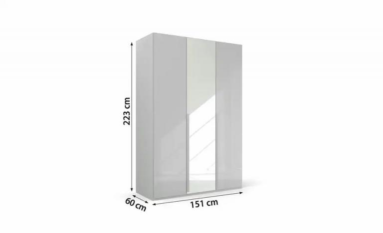 Bemasstes Produktbild ansehen Gesamtbreite: 151 cm Gesamtlänge: 61 cm Gesamthöhe: 223 cm Merkmale Stilrichtung: Basic Griffart: Möbelgriffleiste Anzahl Türen: 3 Stück Anzahl Spiegeltüren: 1 Stück Anzahl Böden: 4 Stück Anzahl verstellbare Einlegeböden: 4 Stück Anzahl Schubkästen: 3 Stück Türart: Drehtüren Anzahl Kleiderstangen: 2 Stück Ausstattung Ausstattung / Funktion: Spiegel Lieferumfang Lieferumfang / mitgeliefertes Zubehör: 4 Fachböden, 2 Kleiderstangen, 3er Schubkasteneinsatz, Innenspiegel, Krawattenhalter Material & Farbe Farbe / Dekor Korpus innen: Beige Farbe / Dekor Einlegeböden: Beige Farbe / Dekor Griffe: Seidengrau Farbe / Dekor Front: Hellgrau Farbe / Dekor Kleiderstange: Aluminiumgrau Material Korpus: Holzwerkstoff beschichtet Material Front: Holzwerkstoff beschichtet Material Einlegeböden: Holzwerkstoff beschichtet Farbe / Dekor Korpus: Hellgrau Farbe / Dekor: Hellgrau Artikelnummer: 40131458 Lieferung ohne Dekoration