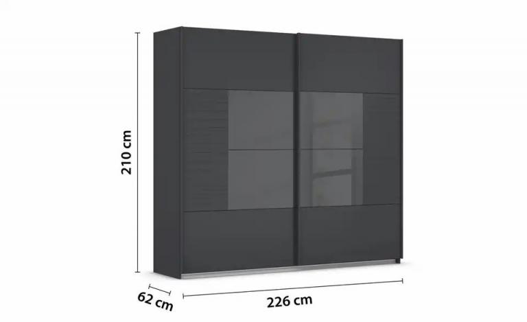 Bemasstes Produktbild ansehen Gesamtbreite: 226 cm Gesamtlänge: 62 cm Gesamthöhe: 210 cm Gesamttiefe: 62 cm Merkmale Stilrichtung: Modern Griffart: Möbelgriffleiste Anzahl Türen: 2 Stück Anzahl verstellbare Einlegeböden: 2 Stück Türart: Schwebetüren Anzahl Kleiderstangen: 2 Stück Ausstattung Gestell: Sockel Lieferumfang Lieferumfang / mitgeliefertes Zubehör: 2 Kleiderstangen, 2 Fachböden Material & Farbe Farbe / Dekor Korpus innen: Beige Farbe / Dekor Einlegeböden: Beige Farbe / Dekor Front: Basaltgrau Farbe / Dekor Kleiderstange: Aluminiumgrau Material Korpus: Holzwerkstoff foliert Material Front: Holzwerkstoff mit Glas Material Griffe: Metall Farbe / Dekor Korpus: Dunkelgrau Farbe / Dekor: Dunkelgrau Artikelnummer: 40130881 Lieferung ohne Dekoration