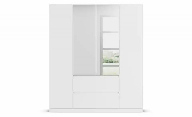 Bemasstes Produktbild ansehen Gesamtbreite: 181 cm Gesamtlänge: 54 cm Gesamthöhe: 210 cm Merkmale Stilrichtung: Zeitlos Griffart: Grifflos Anzahl Türen: 4 Stück Anzahl Spiegeltüren: 2 Stück Anzahl verstellbare Einlegeböden: 3 Stück Anzahl Schubkästen: 2 Stück Anzahl Kleiderstangen: 3 Stück Lieferumfang Lieferumfang / mitgeliefertes Zubehör: 3 Fachböden, 3 Kleiderstangen Hinweise max. Belastbarkeit je verstellbarem Einlegeboden bis ca.: 10 kg Montagehinweise: Aufbau mit einer zweite Person empfohlen Material & Farbe Farbe / Dekor Korpus innen: Beige Farbe / Dekor Einlegeböden: Beige Farbe / Dekor Front: Weiß Material Korpus: Holzwerkstoff lackiert Material Front: Holzwerkstoff mit Spiegel Farbe / Dekor Korpus: Weiß Farbe / Dekor: Weiß Artikelnummer: 40131490 Lieferung ohne Dekoration