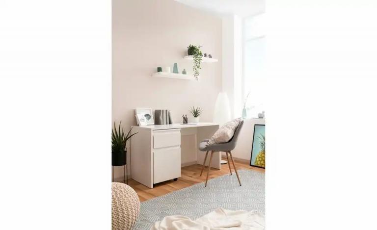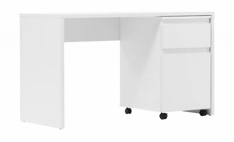 Bemasstes Produktbild ansehen Gesamtbreite: 130 cm Gesamthöhe: 75 cm Gesamttiefe: 55 cm Maße Tisch (LxB): 130×55 cm Merkmale Stilrichtung: Zeitlos Form: rechteckig eckig Ausstattung Gestell: Wangengestell Lieferumfang nicht im Lieferumfang enthalten: Rollcontainer Material & Farbe Farbe / Dekor Gestell: Weiß Material Tischplatte: Holzwerkstoff foliert Material Gestell: Holzwerkstoff foliert Farbe / Dekor: Weiß Artikelnummer: 11351953 Lieferung ohne Dekoration