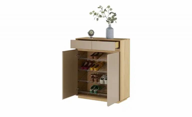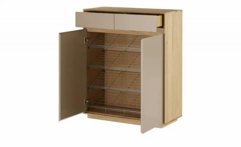 Modernes Design Passend zur Tiba Garderobe Korpus teilmassiv Eiche Bianco Qualität aus Deutschland Maße Gesamtbreite: 86 cm Gesamthöhe: 103 cm Gesamttiefe: 37 cm Merkmale Stilrichtung: Modern Platz für ca.: 16 Paar Schuhe Mehr zu Ausführung: Grifflose Fronten Anzahl Türen: 2 Stück Anzahl Schubkästen: 2 Stück Anzahl Schuhroste: 4 Stück Türanschlag: links rechts Türart: Drehtüren Allgemeine Prüf- und Gütesiegel: Made in Germany Ausstattung Gestell: Sockel Ausstattung / Funktion: Türdämpfer Schubkastendämpfer Vollauszug Selbsteinzug Hinweise Reinigungsart & Pflegehinweise: Flüssigkeiten und Fett möglichst sofort abwischen Material & Farbe Material Schuhroste: Metall Farbe / Dekor Korpus innen: Eiche bianco Farbe / Dekor Front: Sand Farbe / Dekor Schuhroste: silberfarben Material Korpus: Holzwerkstoff furniert Massivholz Material Front: Holzwerkstoff lackiert Material Füße / Gestell: Holzwerkstoff furniert Farbe / Dekor Füße/Gestell: Eiche bianco Farbe / Dekor Korpus: Eiche bianco Farbe / Dekor: Creme Eiche bianco Mehr zu Material: Korpus: teilmassiv Front: MDF Platten lackiert Artikelnummer: 12363951 Lieferung ohne Dekoration