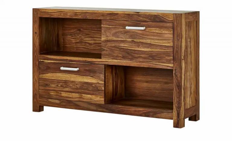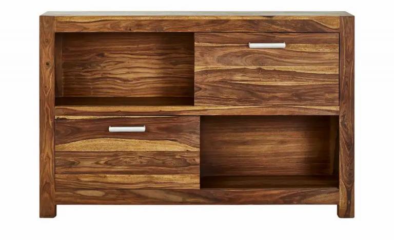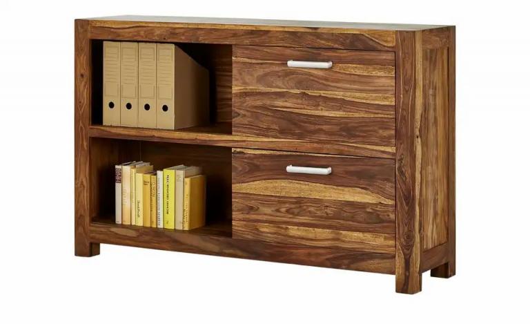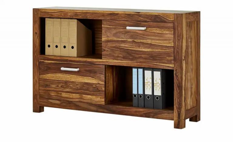 Hochwertiges Sheesham-Holz verarbeitet Durch individuelle Maserung ein Unikat Mit zwei Schiebetüren und vier Fächern Maße Gesamtbreite: 140 cm Gesamthöhe: 90 cm Gesamttiefe: 38 cm Merkmale Stilrichtung: Industrial Griffart: Stangengriff Anzahl Türen: 2 Stück Anzahl Fächer: 4 Stück Anzahl Böden: 1 Stück Türart: Schiebetüren Ausstattung Gestell: Füße Mehr zu Ausstattung / Funktion: Griffe in schwarz über Art.-Nr. 12238797 zusätzlich bestellbar Alle Fächer inOrdnerhöhe Hinweise Reinigungsart & Pflegehinweise: Reinigung mit feuchtem, nicht tropfnassem Tuch Material & Farbe Farbe / Dekor Korpus innen: Sheesham Farbe / Dekor Einlegeböden: Sheesham Farbe / Dekor sichtbare Rückwände: Sheesham Farbe / Dekor Griffe: Silbergrau Farbe / Dekor Front: gewachst Sheesham Material sichtbare Rückwand: Holzwerkstoff furniert Material Korpus: Holzwerkstoff furniert Material Front: Holzwerkstoff furniert Material Einlegeböden: Holzwerkstoff furniert Material Griffe: Metall Material Füße / Gestell: Holzwerkstoff furniert Farbe / Dekor Füße/Gestell: Sheesham gewachst Farbe / Dekor Korpus: Sheesham Farbe / Dekor: Sheesham Mehr zu Farbe: Sheesham honigbraun Artikelnummer: 11352202 Lieferung ohne Dekoration