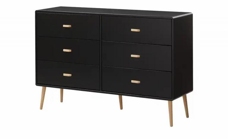 Gesamtbreite: 135,1 cm Gesamthöhe: 89,1 cm Gesamttiefe: 39,6 cm Höhe Füße / Gestell: 21 cm Merkmale Stilrichtung: Skandi Modern Griffart: Möbelgriff Anzahl Schubkästen: 6 Stück Ausstattung Gestell: Kegel Hinweise max. Belastbarkeit je Schubkasten bis ca.: 4 kg Reinigungsart & Pflegehinweise: Oberfläche mit feuchtem Baumwolltuch abwischen und mit trockenem Tuch nachwischen Material & Farbe Farbe / Dekor Korpus innen: Schwarz Farbe / Dekor Griffe: Eiche Farbe / Dekor Front: Schwarz Material Griffe: Massivholz Material Füße / Gestell: Massivholz Farbe / Dekor Füße/Gestell: Eiche Farbe / Dekor Korpus: Schwarz Farbe / Dekor: Schwarz Artikelnummer: 40340176 Lieferung ohne Dekoration