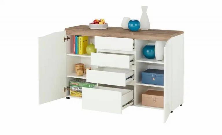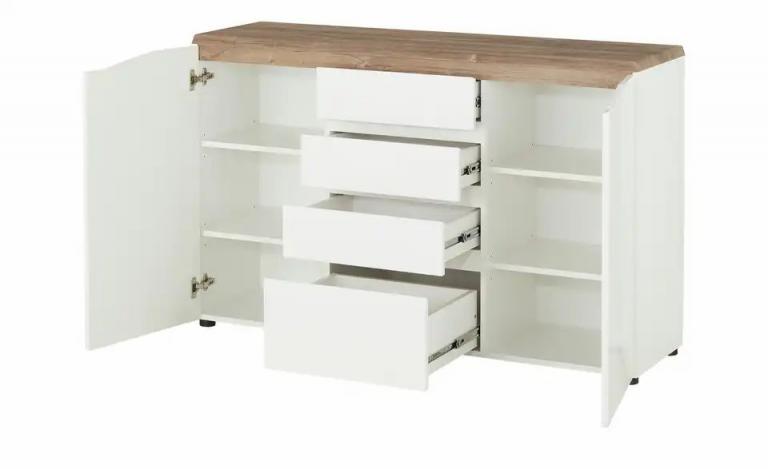 Gesamtbreite: 140 cm Gesamthöhe: 88 cm Gesamttiefe: 40 cm Merkmale Stilrichtung: Modern Anzahl Türen: 2 Stück Anzahl Böden: 4 Stück Anzahl verstellbare Einlegeböden: 4 Stück Anzahl Schubkästen: 4 Stück Türart: Drehtüren Hinweise Reinigungsart & Pflegehinweise: keine scharfen Haushaltsreiniger verwenden Material & Farbe Farbe / Dekor Einlegeböden: Weiß Farbe / Dekor Front: Hochglanz Material Korpus: Holzwerkstoff beschichtet Material Front: Holzwerkstoff beschichtet Material Einlegeböden: Holzwerkstoff beschichtet Farbe / Dekor Korpus: Hochglanz Farbe / Dekor: Weiß Eiche (Nachbildung) Mehr zu Material: Material Absetzung: Holzwerkstoff foliert Artikelnummer: 12234754 Lieferung ohne Dekoration