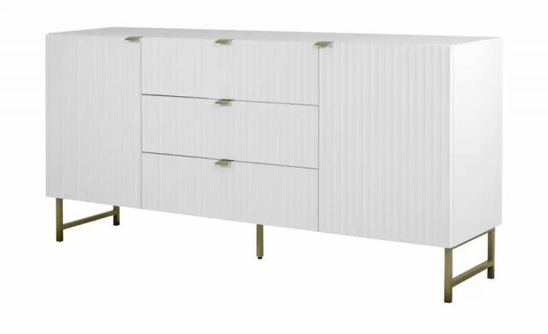 Lautlose Soft-Close-System Gut unterteilter Stauraum Eleganter Look durch die goldenen Details Stabile Metallfüße Maße Gesamtbreite: 179 cm Gesamthöhe: 90 cm Gesamttiefe: 40,5 cm Höhe Füße / Gestell: 20 cm Merkmale Stilrichtung: Glamour Modern Griffart: Möbelgriff Anzahl Türen: 2 Stück Anzahl verstellbare Einlegeböden: 2 Stück Türart: Drehtüren Ausstattung Gestell: 4-Fußgestell Ausstattung / Funktion: Soft-Close Hinweise max. Belastbarkeit je verstellbarem Einlegeboden bis ca.: 5 kg Reinigungsart & Pflegehinweise: Flüssigkeiten und Fett möglichst sofort abwischen Oberfläche mit feuchtem Baumwolltuch abwischen und mit trockenem Tuch nachwischen Material & Farbe Farbe / Dekor Korpus innen: Weiß Farbe / Dekor sichtbare Rückwände: Weiß Farbe / Dekor Griffe: Goldfarben Farbe / Dekor Front: Weiß Material sichtbare Rückwand: Holzwerkstoff beschichtet Material Korpus: Holzwerkstoff beschichtet Material Front: Holzwerkstoff beschichtet Material Griffe: Kunststoff Material Füße / Gestell: Metall beschichtet Farbe / Dekor Korpus: Weiß Farbe / Dekor: Weiß Artikelnummer: 40201904 Lieferung ohne Dekoration