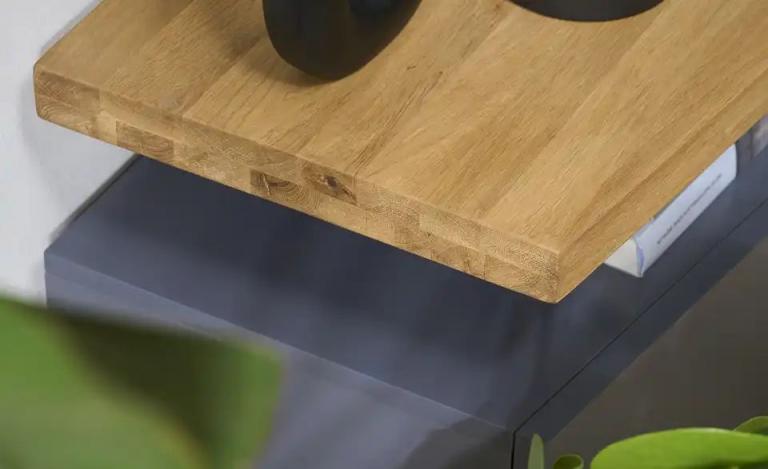 Oberboden aus massiver geölter Asteiche Drei geräumige Schübe Korpus im edlem Mattlack-Finish Maße Gesamtbreite: 180 cm Gesamthöhe: 39 cm Gesamttiefe: 40 cm Merkmale Stilrichtung: Zeitlos Modern Anzahl Fächer: 3 Stück Anzahl Böden: 1 Stück Anzahl Schubkästen: 3 Stück Ausstattung Gestell: Sockel Hinweise max. Belastbarkeit je Schubkasten bis ca.: 5 kg Reinigungsart & Pflegehinweise: Oberfläche mit feuchtem Baumwolltuch abwischen und mit trockenem Tuch nachwischen Flüssigkeiten und Fett möglichst sofort abwischen Material & Farbe Farbe / Dekor Korpus innen: Grau matt Farbe / Dekor Front: Grau matt Material Füße / Gestell: Holzwerkstoff lackiert Farbe / Dekor Füße/Gestell: Grau matt Farbe / Dekor Korpus: Grau matt Farbe / Dekor: Grau matt Mehr zu Material: Oberboden: Massivholz, geölt Mehr zu Farbe: Oberboden: Asteiche Artikelnummer: 13345913 Lieferung ohne Dekoration