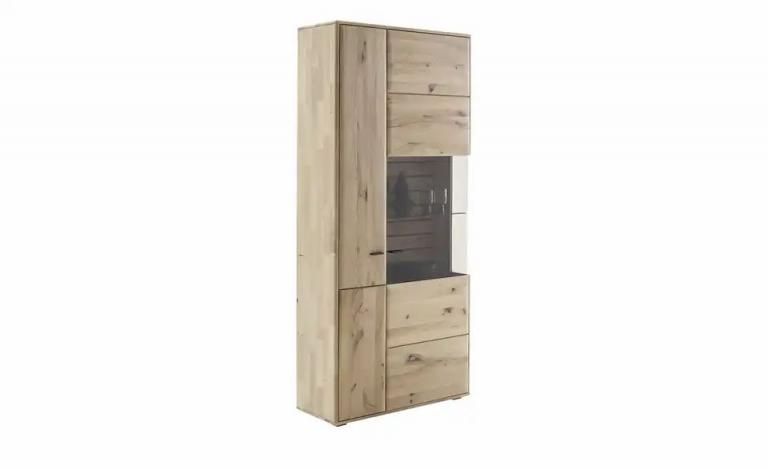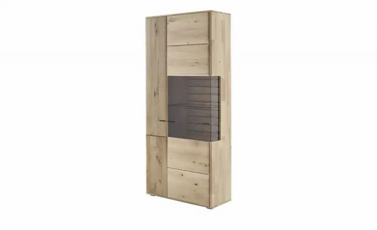 Holz zum Schutz geölt Hochwertige Qualität Großzügiger Stauraum Maße Gesamtbreite: 94 cm Gesamthöhe: 207 cm Gesamttiefe: 37 cm Merkmale Stilrichtung: Zeitlos Griffart: Möbelgriff Türen mit Glaseinsatz: 1 Stück Anzahl Glasböden: 1 Stück Mehr zu Ausführung: Front mit durchgehender Lamelle Anzahl Türen: 2 Stück Anzahl Böden: 10 Stück Anzahl verstellbare Einlegeböden: 5 Stück Türart: Drehtüren Ausstattung Gestell: Gleiter Ausstattung / Funktion: Türdämpfer Lieferumfang nicht im Lieferumfang enthalten: LED-Beleuchtung (separat erhältlich) Material & Farbe Farbe / Dekor Korpus innen: Asteiche geölt Farbe / Dekor Einlegeböden: Asteiche geölt Farbe / Dekor sichtbare Rückwände: Asteiche geölt Farbe / Dekor Griffe: Anthrazit Farbe / Dekor Front: Asteiche geölt Material sichtbare Rückwand: Massivholz Material Korpus: Massivholz Glas Material Front: Massivholz Glas Material Einlegeböden: Glas Massivholz Material Griffe: Metall Material Füße / Gestell: Kunststoff Farbe / Dekor Füße/Gestell: Schwarz Farbe / Dekor Korpus: Asteiche geölt Farbe / Dekor: Asteiche geölt Mehr zu Material: Front und Korpus aus Asteiche massiv in Kristalleiche geölt Griffe aus Metall in Anthrazit Front- und Seitenverglasung in Parsol Braun Artikelnummer: 40231041 Lieferung ohne Dekoration