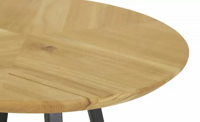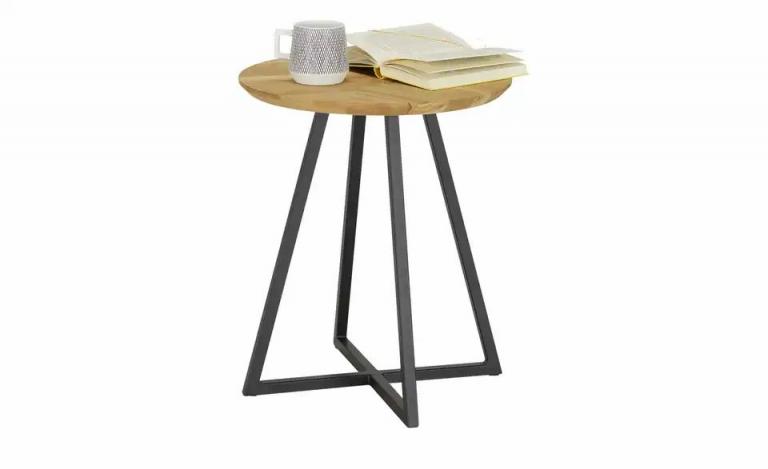 Designertisch in Markenqualität Jeder Tisch ein Unikat Sternförmig verleimte Tischplatte Maße Gesamthöhe: 52 cm Durchmesser: 45 cm Merkmale Stilrichtung: Industrial Form: rund Mehr zu Ausführung: Abgerundete Tischkante Ausstattung Gestell: Kufengestell Hinweise Reinigungsart & Pflegehinweise: Flüssigkeiten und Fett möglichst sofort abwischen keine scharfen Haushaltsreiniger verwenden Material & Farbe Farbe / Dekor Gestell: Schwarz Material Tischplatte: Massivholz Material Gestell: Metall lackiert Farbe / Dekor: Wildeiche geölt Artikelnummer: 11329194 Lieferung ohne Dekoration