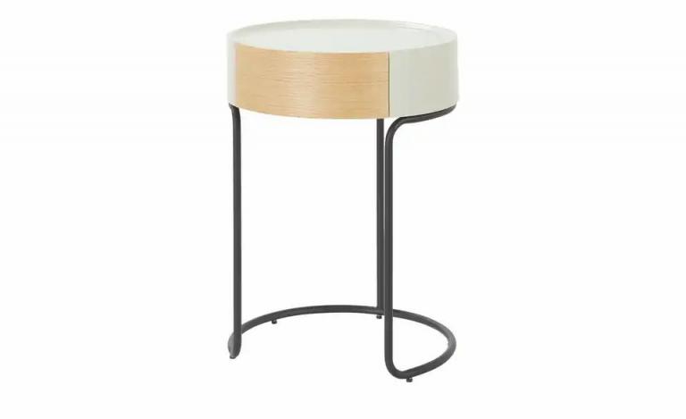Designertisch in Markenqualität Mit praktischem Schubfach Offenes, modernes Design Maße Gesamthöhe: 60 cm Durchmesser: 45 cm Merkmale Stilrichtung: Modern Form: rund Ausstattung Ausstattung / Funktion: Schubladen Gestell: Kufengestell Gleiter Mehr zu Ausstattung / Funktion: Schublade mit Gehrungsgriff Schublade: Belastbarkeit max. 3kg Technische Daten max. Belastbarkeit bis ca.: 30 kg Hinweise Reinigungsart & Pflegehinweise: Flüssigkeiten und Fett möglichst sofort abwischen Material & Farbe Farbe / Dekor Gestell: Schwarz Material Tischplatte: Holzwerkstoff lackiert Material Gestell: Metall pulverbeschichtet Farbe / Dekor: Eiche Silbergrau Mehr zu Material: Schublade: Holzwerkstoff beschichtet Tischplatte, Korpus: MDF lackiert Mehr zu Farbe: Schublade: Eiche Dekor Tischplatte, Korpus: Seidengrau nach RAL 7044 Artikelnummer: 40320443 Lieferung ohne Dekoration