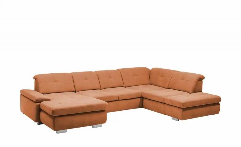 Hoher Sitzkomfort durch Kaltschaumpolsterung Mit manueller Sitztiefenverstellung Bezug aus hochwertigem Mikrofaser Zeitloses, modernes Design Maße Gesamtbreite: 371 cm Gesamthöhe: 100 cm Gesamttiefe: 260 cm Schenkelmaß 1: 371 cm Schenkelmaß 2: 260 cm Liegefläche Länge: 145 cm Liegefläche Breite: 294 cm Sitztiefe: 59 cm Mehr zu Maßen: Höhe bei hochgeklapptem Kopfteil: ca. 100 cm Sitzhöhe: 47 Höhe Füße / Gestell: 6 cm Bodenfreiheit: 8 cm Merkmale Stilrichtung: Zeitlos Anzahl Sitze: 4 Ausrichtung: rechts Allgemeine Prüf- und Gütesiegel: Deutsche Gütegemeinschaft Möbel – Goldenes M Muster: Kein Muster Ausstattung Art der Polsterung: Kaltschaum Polster-Unterkonstruktion: Wellenunterfederung Ausstattung / Funktion: Schlaffunktion Sitztiefenverstellung manuell manuelle Kopfteilverstellung Stauraum Bettkasten Armlehnenverstellung manuell Füße/Gestell: eckig Funktion: Erweiterte Funktion Lieferumfang nicht im Lieferumfang enthalten: Zierkissen Topper Hinweise Reinigungsart & Pflegehinweise: Flecken mit destilliertem Wasser austupfen keine scharfen Haushaltsreiniger verwenden Material & Farbe Bezug Sitz / Rückenlehne: Mikrofaser Material Füße / Gestell: Metall Materialzusammensetzung Textil: 85% Polyester, 15% Nylon Sitz- und Rückenbezug: 85% Polyester, 15% Nylon Farbe / Dekor Füße/Gestell: silberfarben Farbe / Dekor: Terracotta Artikelnummer: 26409977 Lieferung ohne Dekoration