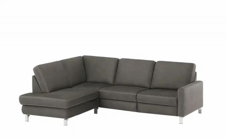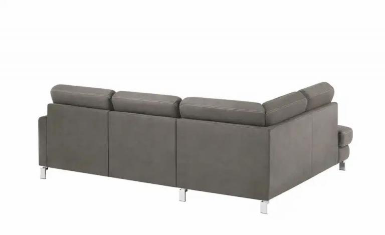 Gesamtbreite: 257 cm Gesamthöhe: 89 cm Gesamttiefe: 200 cm Sitztiefe: 57 cm Sitzhöhe: 47 cm Breite Armlehne: 13 cm Bodenfreiheit: 12 cm Merkmale Stilrichtung: klassisch Ausrichtung: links Sitzhärte: Fest Allgemeine Prüf- und Gütesiegel: Deutsche Gütegemeinschaft Möbel – Goldenes M Der Blaue Engel Motiv: kein Motiv Muster: uni Ausstattung Art der Polsterung: Federkern Polster-Unterkonstruktion: Wellenunterfederung Ausstattung / Funktion: Frei im Raum stellbar Füße/Gestell: Winkel Funktion: ohne Material & Farbe Bezug Sitz / Rückenlehne: Mikrofaser Material Füße / Gestell: Metall Materialzusammensetzung Textil: 100% Polyester Farbe / Dekor Füße/Gestell: verchromt glänzend Farbe / Dekor: Anthrazit Mehr zu Material: Kontrastfaden in Beige Artikelnummer: 26402017 Lieferung ohne Dekoration