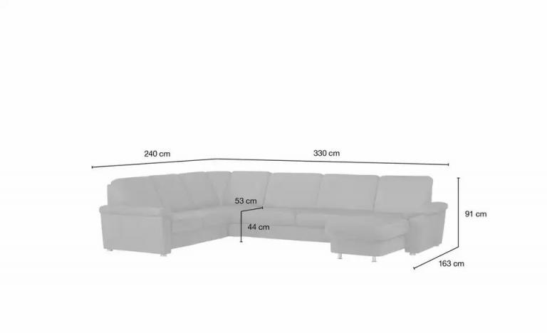 Bequemes Sitzen und viel Platz Softe, strapazierfähige Mikrofaser Hochwertiger Federkern In verschiedenen Farben und Ausführungen erhältlich Zeitloses, modernes Design Maße Bemasstes Produktbild ansehen Gesamtbreite: 330 cm Gesamthöhe: 91 cm Gesamttiefe: 240 cm Schenkelmaß 1: 240 cm Schenkelmaß 2: 163 cm Liegefläche Länge: 263 cm Liegefläche Breite: 123 cm Sitztiefe: 53 cm Breite Armlehne: 20 cm Bodenfreiheit: 3,5 cm Merkmale Stilrichtung: klassisch Anzahl Sitze: 4,5 Ausrichtung: links Allgemeine Prüf- und Gütesiegel: EU Muster: Kein Muster Ausstattung Art der Polsterung: Federkern Schaumstoff Polster-Unterkonstruktion: Wellenunterfederung Füße/Gestell: Gleiter rund Funktion: ohne Hinweise Reinigungsart & Pflegehinweise: Flecken mit destilliertem Wasser austupfen keine scharfen Haushaltsreiniger verwenden Material & Farbe Bezug Sitz / Rückenlehne: Mikrofaser Material Füße / Gestell: Kunststoff Metall Materialzusammensetzung Textil: Sitz- und Rückenbezug: 100% Polyester Farbe / Dekor Füße/Gestell: silberfarben Farbe / Dekor: Rot Mehr zu Material: Rückseite Spannstoff (100% Polypropylen) vorne Metallfuß, hinten Gleiter metallfarbig Artikelnummer: 18407252 Lieferung ohne Dekoration