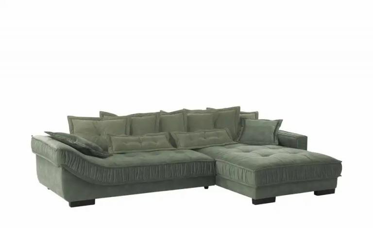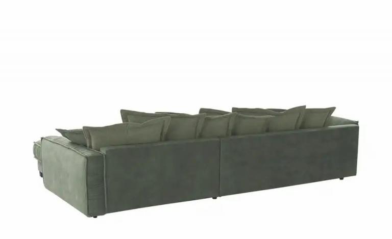 Bezug aus pflegeleichter Mikrofaser Hoher Sitzkomfort Inklusive 6 Rücken-, 2 Nieren- und 2 Armlehnenkissen Maße Gesamtbreite: 333 cm Gesamthöhe: 90 cm Gesamttiefe: 202 cm Sitztiefe: 69 cm Mehr zu Maßen: Sitztiefe ohne Kissen: ca. 107 cm Sitzhöhe: 46 cm Bodenfreiheit: 7 cm Merkmale Stilrichtung: Zeitlos Modern klassisch Ausrichtung: rechts Ausstattung Art der Polsterung: Polyätherschaum Polster-Unterkonstruktion: Wellenunterfederung Ausstattung / Funktion: Frei im Raum stellbar Füße/Gestell: eckig Lieferumfang Lieferumfang / mitgeliefertes Zubehör: 6x Rückenkissen 2x Nierenkissen 2x Armlehnenkissen Material & Farbe Bezug Sitz / Rückenlehne: Mikrofaser Material Füße / Gestell: Kunststoff Materialzusammensetzung Textil: 100% Polyester Farbe / Dekor Füße/Gestell: Schwarz Farbe / Dekor: Dunkelgrün Mehr zu Farbe: 6 Rückenkissen und 2 Nierenkissen in Olivgrün 2 Armlehnenkissen und Sofa in Dunkelgrün Artikelnummer: 50404721 Lieferung ohne Dekoration