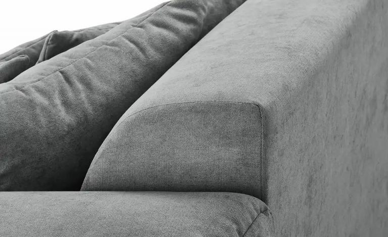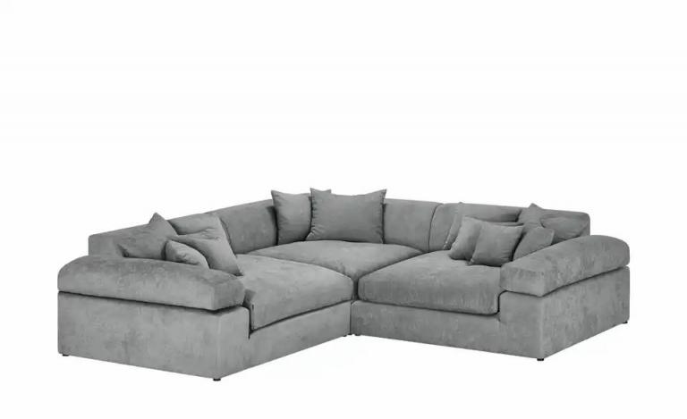 Weicher, strapazierfähiger Bezug Sofa kann frei im Raum stehen 14 individuell platzierbare Kissen Armlehnenkissen abnehmbar Zeitloses, kombinationsfreudiges Design Maße Bemasstes Produktbild ansehen Gesamtbreite: 283 cm Gesamthöhe: 86 cm Gesamttiefe: 283 cm Sitztiefe: 106 cm Sitzhöhe: 49 Höhe Rückenlehne: 78 cm Höhe Füße / Gestell: 2 cm Höhe Armlehne: 42 cm Breite Armlehne: 32 cm Bodenfreiheit: 2 cm Merkmale Stilrichtung: Modern Anzahl Sitze: 4 Ausrichtung: rechts Sitzhärte: Weich Ausstattung Art der Polsterung: Schaumstoff Polster-Unterkonstruktion: Spanplatte Ausstattung / Funktion: Frei im Raum stellbar Füße/Gestell: Gleiter Mehr zu Ausstattung / Funktion: 2 Armlehnenkissen Lieferumfang Lieferumfang / mitgeliefertes Zubehör: 4 große Kissen, 6 mittlere Kissen, 2 kleine Kissen, 2 Seitenkissen Hinweise Garantie: Kissenfüllungen neigen Modellbedingtzur Klumpenbildung und können durch aufschütteln nicht verbessert werden. Eine Reklamation ist nicht möglich. Reinigungsart & Pflegehinweise: Flüssigkeiten und Fett möglichst sofort abwischen Flecken mit destilliertem Wasser austupfen Material & Farbe Bezug Sitz / Rückenlehne: Flachgewebe Material Füße / Gestell: Kunststoff Materialzusammensetzung Textil: 100% Polyester Sitz- und Rückenbezug: 100% Polyester Farbe / Dekor Füße/Gestell: Schwarz Farbe / Dekor: Silbergrau Mehr zu Material: Kissenbezug Flachgewebe (100% Polyester) Zierkissenbezug 100% Polyester Artikelnummer: 23402503 Lieferung ohne Dekoration