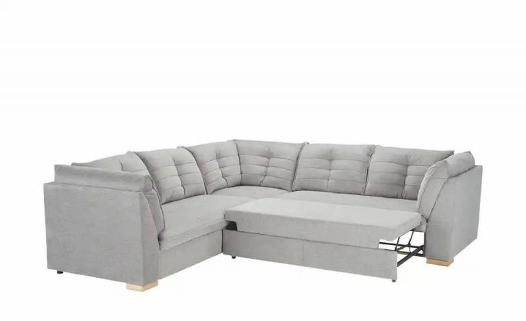 Leicht zum Gästebett auszuziehen Flexibel in den Wohnraum zu stellen Stabile Füße aus Massivholz Maße Gesamtbreite: 270 cm Gesamthöhe: 85 cm Gesamttiefe: 270 cm Liegefläche Länge: 205 cm Liegefläche Breite: 120 cm Sitztiefe: 58 cm Sitzhöhe: 40 cm Höhe Rückenlehne: 45 cm Breite Armlehne: 25 cm Breite Armlehne rechts: 25 cm Breite Armlehne links: 25 cm Bodenfreiheit: 5 cm Merkmale Stilrichtung: Zeitlos Modern Anzahl Sitze: 4 Ausrichtung: links Sitzhärte: Mittel Motiv: kein Motiv Muster: Kein Muster max. Belastbarkeit der Polsterung: 120 kg Ausstattung Art der Polsterung: Federkern Polyätherschaum Polster-Unterkonstruktion: Wellenunterfederung Ausstattung / Funktion: Schlaffunktion Frei im Raum stellbar Füße/Gestell: eckig Funktion: Schlaffunktion Hinweise Reinigungsart & Pflegehinweise: Flüssigkeiten und Fett möglichst sofort abwischen Material & Farbe Material Korpus: Massivholz gepolstert und bezogen Bezug Sitz / Rückenlehne: Flachgewebe Material Füße / Gestell: Massivholz Materialzusammensetzung Textil: 100% Polyester Farbe / Dekor Füße/Gestell: Buche Farbe / Dekor: Hellgrau Mehr zu Material: Bezug Stoff Korpus-Bezug Flachgewebe Artikelnummer: 40401156 Lieferung ohne Dekoration