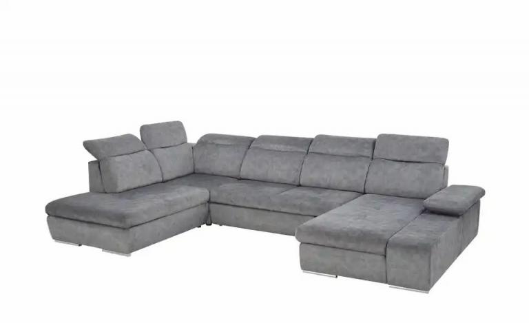 Viel Platz und zwei Ottomanen Alle sechs Kopteile verstellbar Klappbare, dick gepolsterte Armlehne Pflegeleichter Flachgewebsbezug Wahlweise mit Schlaffunktion und Bettkästen Maße Gesamtbreite: 355 cm Gesamthöhe: 86 cm Gesamttiefe: 234 cm Liegefläche Länge: 270 cm Liegefläche Breite: 125 cm Sitztiefe: 58 cm Mehr zu Maßen: Gesamthöhe bei hochgeklappten Kopfteil: ca. 100 cm Sitzhöhe: 42 Höhe Füße / Gestell: 3,5 cm Bodenfreiheit: 3,5 cm Merkmale Stilrichtung: klassisch Zeitlos Ausrichtung: links Ausstattung Art der Polsterung: Schaumstoff Polster-Unterkonstruktion: Wellenunterfederung Ausstattung / Funktion: Armlehnenverstellung Bettkasten Schlaffunktion Kopfteilverstellung Bettkasten Füße/Gestell: rund Funktion: Erweiterte Funktion Hinweise Reinigungsart & Pflegehinweise: Flecken mit destilliertem Wasser austupfen keine scharfen Haushaltsreiniger verwenden Material & Farbe Bezug Sitz / Rückenlehne: Flachgewebe Material Füße / Gestell: Metall Materialzusammensetzung Textil: Sitz- und Rückenbezug: 100% Polyester Farbe / Dekor Füße/Gestell: verchromt Farbe / Dekor: Silbergrau Mehr zu Material: Liegefläche Drell Liegeflächen-Bezug 100% Polyester Artikelnummer: 27402278 Lieferung ohne Dekoration