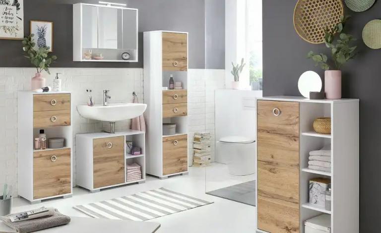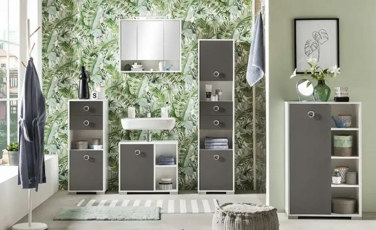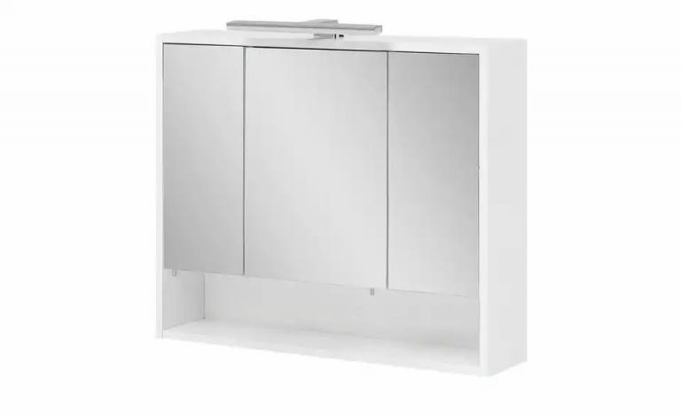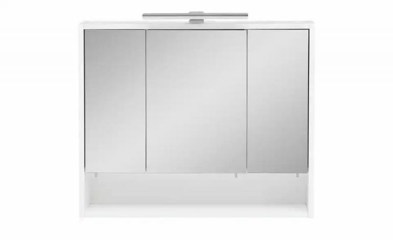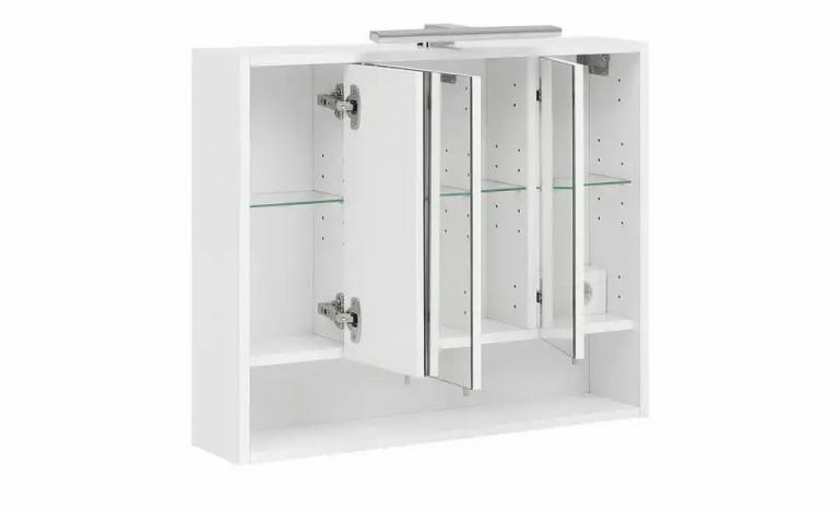 Drei Türen mit Spiegelfläche LED-Aufsatzleuchte inklusive Höhenverstellbare Glaseinlegeböden Ein großes Regalfach Korpus mit robuster Beschichtung Maße Gesamtbreite: 70 cm Gesamthöhe: 65,6 cm Gesamttiefe: 16 cm Merkmale Stilrichtung: klassisch Zeitlos Griffart: Möbelgriff Anzahl Glasböden: 3 Stück Mehr zu Ausführung: Hängend Anzahl Türen: 3 Stück Anzahl Spiegeltüren: 3 Stück Anzahl Fächer: 1 Stück Anzahl Böden: 3 Stück Anzahl verstellbare Einlegeböden: 3 Stück Türanschlag: rechts links Türart: Drehtüren Ausstattung Ausstattung / Funktion: Beleuchtung Soft-Close inkl. Schalter inkl. Steckdose wandhängend Schalterart: Kippschalter Anzahl Leuchten: 1 Stück Leuchtmittelart: LED Beleuchtungszubehör: LED-Beleuchtung Mehr zu Ausstattung / Funktion: Soft-Close (Tür) Technische Daten Austauschbarkeit der Lichtquelle: Bei diesem Produkt ist das Austauschen der Lichtquelle durch einen Fachmann möglich. Lieferumfang Lieferumfang / mitgeliefertes Zubehör: LED-Aufsatzleuchte Hinweise Montagehinweise: Wandbefestigung erforderlich Reinigungsart & Pflegehinweise: Reinigung mit feuchtem, nicht tropfnassem Tuch Oberfläche mit feuchtem Baumwolltuch abwischen und mit trockenem Tuch nachwischen stärkere Verschmutzungen mit milder Seife und lauwarmem Wasser behandeln keine scharfen Haushaltsreiniger verwenden die Oberflächen sind wenig pflegebedürftig Material & Farbe Material Kranz: Holzwerkstoff beschichtet Farbe / Dekor Korpus innen: Weiß Farbe / Dekor Einlegeböden: transparent Farbe / Dekor Kranz: Weiß Farbe / Dekor Griffe: verchromt Farbe / Dekor Front: matt Weiß Material Ablageboden: Holzwerkstoff beschichtet Material sichtbare Rückwand: Holzwerkstoff beschichtet Material Korpus: Holzwerkstoff beschichtet Material Front: Holzwerkstoff mit Spiegel Material Einlegeböden: Glas Material Griffe: Metall Farbe / Dekor Korpus: Weiß Farbe / Dekor: Weiß Mehr zu Farbe: Weiß Artikelnummer: 11063056 Lieferung ohne Dekoration