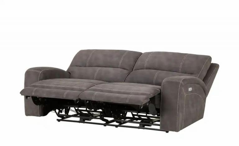 Inklusive elektrischer Relaxfunktion Bezug aus hochwertigem Mikrofaser Angenehmer Sitzkomfort Inklusive universal einsetzbarem USB-Anschluss zum Aufladen ihrer Geräte Maße Sitztiefe: 54 cm Sitzhöhe: 50 cm Höhe Füße / Gestell: 6 cm Höhe Armlehne: 63 cm Sofa 2-sitzig (BxHxT): 174 x 102 x 97 cm Sofa 3-sitzig (BxHxT): 203 x 101 x 97 cm Merkmale Stilrichtung: Zeitlos Muster: Einfarbig Ausstattung bestehend aus: 2-Sitzer 3-Sitzer Art der Polsterung: Schaumstoff Polster-Unterkonstruktion: Nosag-Wellenunterfederung Ausstattung / Funktion: Frei im Raum stellbar Mehr zu Ausstattung / Funktion: Sofa 3-sitzig: elektrische Relaxfunktion und USB-Anschluss Hinweise Reinigungsart & Pflegehinweise: Flecken mit destilliertem Wasser austupfen keine scharfen Haushaltsreiniger verwenden Material & Farbe Material Füße / Gestell: Kunststoff Materialzusammensetzung Textil: 100% Polyester Farbe / Dekor: Dunkelgrau Mehr zu Farbe: Kontrastnaht: weiß/beige Artikelnummer: 27409908 Lieferung ohne Dekoration