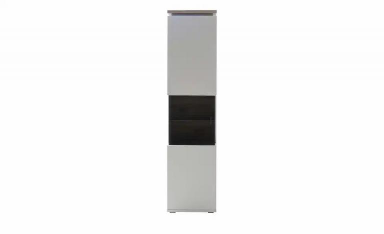 Unempfindliche, beschichtete Oberfläche Vitrinenfächer für Ihre Lieblingsdeko Holzoptik mit attraktiver Maserung Maße Gesamtbreite: 50 cm Gesamthöhe: 207 cm Gesamttiefe: 37 cm Merkmale Stilrichtung: Modern Griffart: Möbelgriff Türen mit Glaseinsatz: 1 Stück Anzahl Glasböden: 1 Stück Anzahl Türen: 1 Stück Anzahl Böden: 5 Stück Anzahl verstellbare Einlegeböden: 2 Stück Türanschlag: links Türart: Drehtüren Ausstattung Gestell: Gleiter Ausstattung / Funktion: Beleuchtung Leuchtmittelart: LED Technische Daten Austauschbarkeit der Lichtquelle: Bei diesem Produkt ist das Austauschen der Lichtquelle durch einen Fachmann möglich. Lieferumfang Lieferumfang / mitgeliefertes Zubehör: inkl. LED-Oberbodenbeleuchtung nicht im Lieferumfang enthalten: LED-Rückwandbeleuchtung (separat erhältlich) Material & Farbe Farbe / Dekor Korpus innen: Hellgrau Farbe / Dekor Einlegeböden: Hellgrau Farbe / Dekor sichtbare Rückwände: Eiche (Nachbildung) Farbe / Dekor Griffe: Anthrazit Farbe / Dekor Front: Hellgrau Material sichtbare Rückwand: Holzwerkstoff beschichtet Material Korpus: Holzwerkstoff beschichtet Glas Material Front: Holzwerkstoff beschichtet Glas Material Einlegeböden: Holzwerkstoff beschichtet Glas Material Griffe: Metall Material Füße / Gestell: Kunststoff Farbe / Dekor Füße/Gestell: Schwarz Farbe / Dekor Korpus: Hellgrau Eiche (Nachbildung) Farbe / Dekor: Hellgrau Eiche (Nachbildung) Mehr zu Material: Korpus aus Holzwerkstoff melaminbeschichtet in Modern White (Hellgrau) Oberboden aus Holzwerkstoff melaminbeschichtet in Viking Oak (Eiche Nachbildung) Front aus Holzwerkstoff tiefgezogen in Modern White (Hellgrau) Sichtbare Rückwand aus Holzwerkstoff in 3D Viking Oak sandgestrahlt (Eiche Nachbildung) Front- und Seitenverglasung sowie Glasboden in Parsol Grau Artikelnummer: 40201780 Lieferung ohne Dekoration