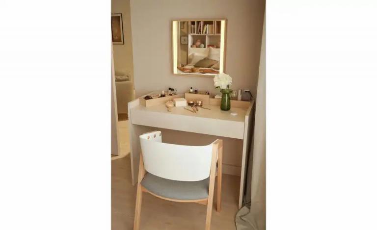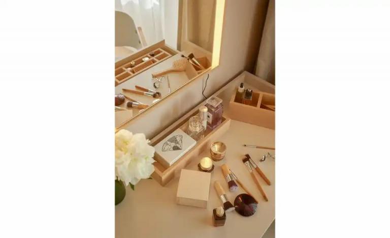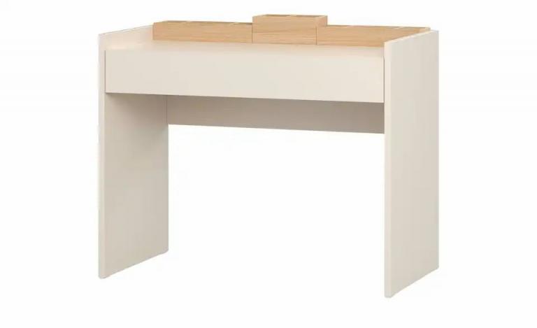 Moderner Schminktisch Mit Organizer und Schublade Maße Gesamtbreite: 100 cm Gesamthöhe: 83,6 cm Gesamttiefe: 50 cm Höhe Tischunterkante: 60,7 cm Stärke Tischplatte: 2,2 cm Länge zwischen Tischbeinen: 95,6 cm Merkmale Stilrichtung: Modern Form: rechteckig Ausstattung Ausstattung / Funktion: Soft-Close (Schub) Mehr zu Ausstattung / Funktion: Belastbarkeit Schublade: 5 Kg Lieferumfang Lieferumfang / mitgeliefertes Zubehör: 2 kleine Kästchen 1 hohes Kästchen Hinweise Reinigungsart & Pflegehinweise: Flüssigkeiten und Fett möglichst sofort abwischen Material & Farbe Farbe / Dekor Gestell: Beige Material Tischplatte: Holzwerkstoff laminiert Material Gestell: Holzwerkstoff laminiert Farbe / Dekor: Sand Mehr zu Farbe: Kästchen: eichenfarben Artikelnummer: 40110795 Lieferung ohne Dekoration