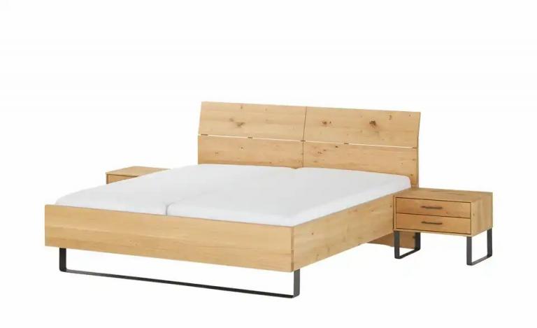 Kopfteil aus massiver Bianco-Eiche Inklusive Nachtkonsolen-Paar Qualität Made in Germany Maße Gesamtbreite: 309 cm Gesamtlänge: 217 cm Gesamthöhe: 96 cm Liegefläche Breite: 180 cm Bettseitenhöhe: 48 cm Mehr zu Maßen: Kopfteilhöhe ca. 96 cm Liegefläche Länge: 200 cm Merkmale Stilrichtung: Zeitlos Industrial Allgemeine Prüf- und Gütesiegel: Deutsche Gütegemeinschaft Möbel – Goldenes M Made in Germany TÜV Rheinland Ausstattung Füße/Gestell: Kufengestell Lieferumfang Lieferumfang / mitgeliefertes Zubehör: 2 Nachtkonsolen nicht im Lieferumfang enthalten: Lattenroste & Matratzen Material & Farbe Material Gestell: Holzwerkstoff foliert Farbe / Dekor: Eiche bianco Eiche Bianco (Nachbildung) Anthrazit Material Füße: Metall Mehr zu Material: Kopfteil Massivholz Artikelnummer: 13100368 Lieferung ohne Dekoration