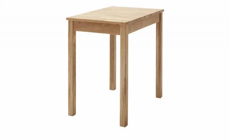 Charmanter, natürlicher Look Stabiles, pflegeleichtes Material Hochwertiges Massivholz Maße Gesamtbreite: 50 cm Gesamtlänge: 70 cm Gesamthöhe: 76 cm Maße Tisch (LxB): ca. 70×50 cm Stärke Tischplatte: 2 cm Merkmale Stilrichtung: Zeitlos Form: rechteckig rechteckig Ausführung Tischkante: gerade Tischkante Platz für ca.: 4 Personen Allgemeine Prüf- und Gütesiegel: FSC Ausstattung Gestell: 4-Fußgestell Mehr zu Ausstattung / Funktion: 100% FSC zertifiziertes Holz Hinweise Reinigungsart & Pflegehinweise: Oberfläche mit feuchtem Baumwolltuch abwischen und mit trockenem Tuch nachwischen Material & Farbe Farbe / Dekor Gestell: Wildeiche geölt Material Tischplatte: Massivholz Material Gestell: Massivholz Farbe / Dekor: Wildeiche geölt Artikelnummer: 15300522 Lieferung ohne Dekoration