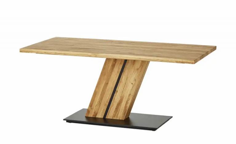 Gesamtbreite: 90 cm Gesamtlänge: 180 cm Gesamthöhe: 77 cm Mehr zu Maßen: Höhe bis Unterkante Tischzarge: ca. 72 cm Stärke Tischplatte: 4 cm Merkmale Stilrichtung: Zeitlos Form: rechteckig rechteckig Ausführung Tischkante: gerade Tischkante Mehr zu Ausführung: optisch schwebende Bodenplatte Ausführung: Rustikales Massivholz mit natürlichen Ästen, Löchern und Rissen Platz für ca.: 6 Personen Ausstattung Gestell: Säule Hinweise Reinigungsart & Pflegehinweise: Oberfläche mit feuchtem Baumwolltuch abwischen und mit trockenem Tuch nachwischen Material & Farbe Farbe / Dekor Gestell: Eiche geölt Material Tischplatte: Massivholz Material Gestell: Massivholz Farbe / Dekor: Eiche geölt Mehr zu Material: Absetzung und Bodenplatte: Holzwerkstoff beschichtet in Schwarz Artikelnummer: 13302756 Lieferung ohne Dekoration