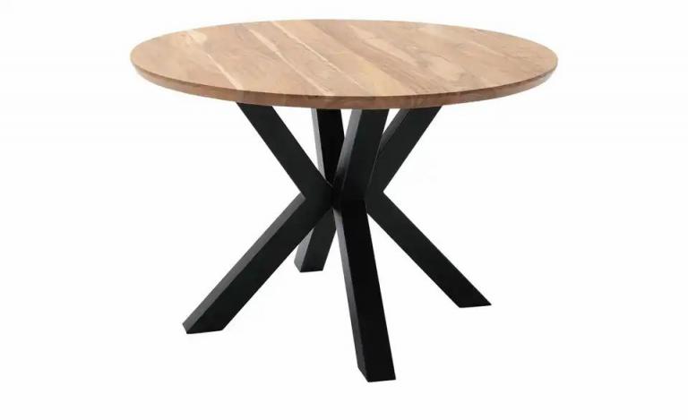 Zeitlos und kombinationsfreudig Stabiles Gestell aus Metall Platte mit durchgehender Lamelle Maße Gesamthöhe: 77 cm Durchmesser: 120 cm Höhe Tischunterkante: 73,5 cm Stärke Tischplatte: 3,5 cm Merkmale Stilrichtung: Zeitlos Modern Form: rund rund Ausführung Tischkante: schräge Tischkante Ausführung: Platte mit durchgehender Lamelle Platz für ca.: 4 Personen Ausstattung Gestell: Sternfußgestell Hinweise Reinigungsart & Pflegehinweise: Oberfläche mit feuchtem Baumwolltuch abwischen und mit trockenem Tuch nachwischen Material & Farbe Farbe / Dekor Gestell: Schwarz pulverbeschichtet Material Tischplatte: Massivholz Material Gestell: Metall Farbe / Dekor: Akazie Natur lackiert Artikelnummer: 15304250 Lieferung ohne Dekoration