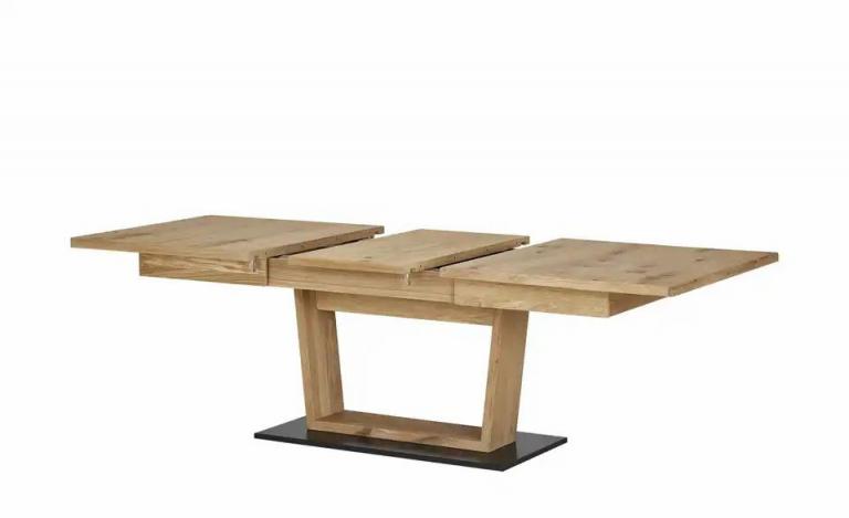 Oberfläche zum Schutz geölt Auf 280 cm verlängerbar Mit praktischem Mittelauszug Maße Gesamtbreite: 100 cm Gesamtlänge: 180 cm Gesamthöhe: 77 cm Maße Tisch (LxB): ca. 180×100 cm Mehr zu Maßen: Höhe bis Unterkante Tischplatte ca. 74 cm Maße der Bodenplatte: ca. 110×2,5×50 cm Höhe Tischunterkante: 63 cm Stärke Tischplatte: 4 cm Merkmale Stilrichtung: Zeitlos Modern Form: rechteckig rechteckig Ausführung Tischkante: gerade Tischkante Platz für ca.: 6.0 Personen 10.0 Personen Ausstattung Ausstattung / Funktion: Synchronauszug ausziehbar Mittelauszug Gestell: Säule (U-förmig) Mehr zu Ausstattung / Funktion: Synchronauszug mit 2 innenliegenden Einlegeplatten à ca. 50 cm Technische Daten Ausziehbar bis: 280 cm max. Belastbarkeit bis ca.: 50 kg Lieferumfang Lieferumfang / mitgeliefertes Zubehör: inkl. Filzgleiter Hinweise Reinigungsart & Pflegehinweise: Oberfläche mit feuchtem Baumwolltuch abwischen und mit trockenem Tuch nachwischen Material & Farbe Farbe / Dekor Gestell: Eiche bianco geölt Material Tischplatte: Holzwerkstoff furniert Material Gestell: Massivholz Holzwerkstoff lackiert Farbe / Dekor: Eiche bianco Mehr zu Material: Tischplatte aus Holzwerkstoff furniert in Eiche Bianco geölt mit massivem Umleimer Säule aus Massivholz in Asteiche Bianco geölt mit durchgehender Lamelle Bodenplatte aus Holzwerkstoff lackiert in Anthrazit Artikelnummer: 13307266 Lieferung ohne Dekoration